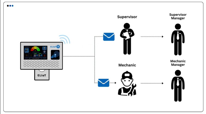 SMS notifications, mechanic/supervisor alerts, smart light indicators